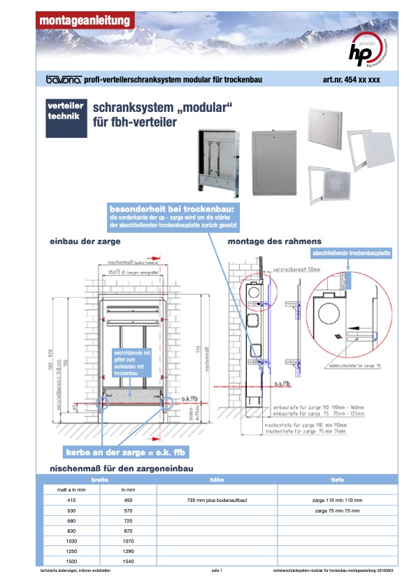 BAVARIA-Profi-Verteilerschranksystem Modular für Trockenbau